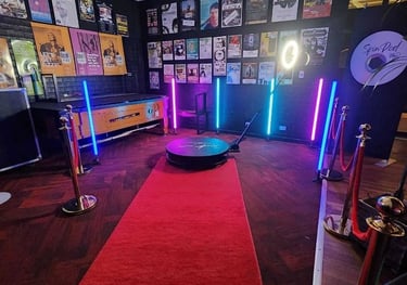 Setup and operation of interactive media booths providing 360° video capture, photo experiences, and automated video content for guests.